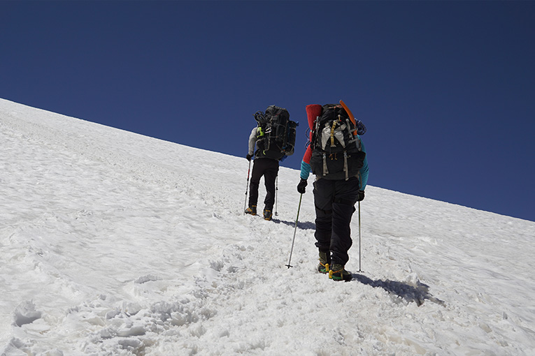 Казбек - пятитысячник на границе России и Грузии. Массив горы включает две вершины: Казбек Восточный (5033 метра) и Казбек Западный (5015 метра).